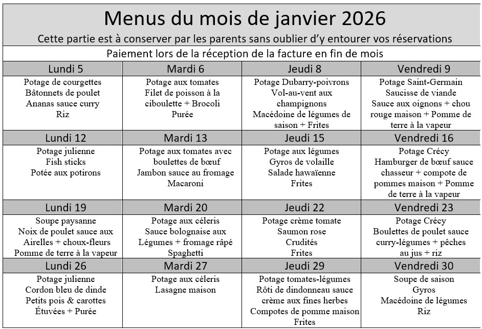 Menu Janvier